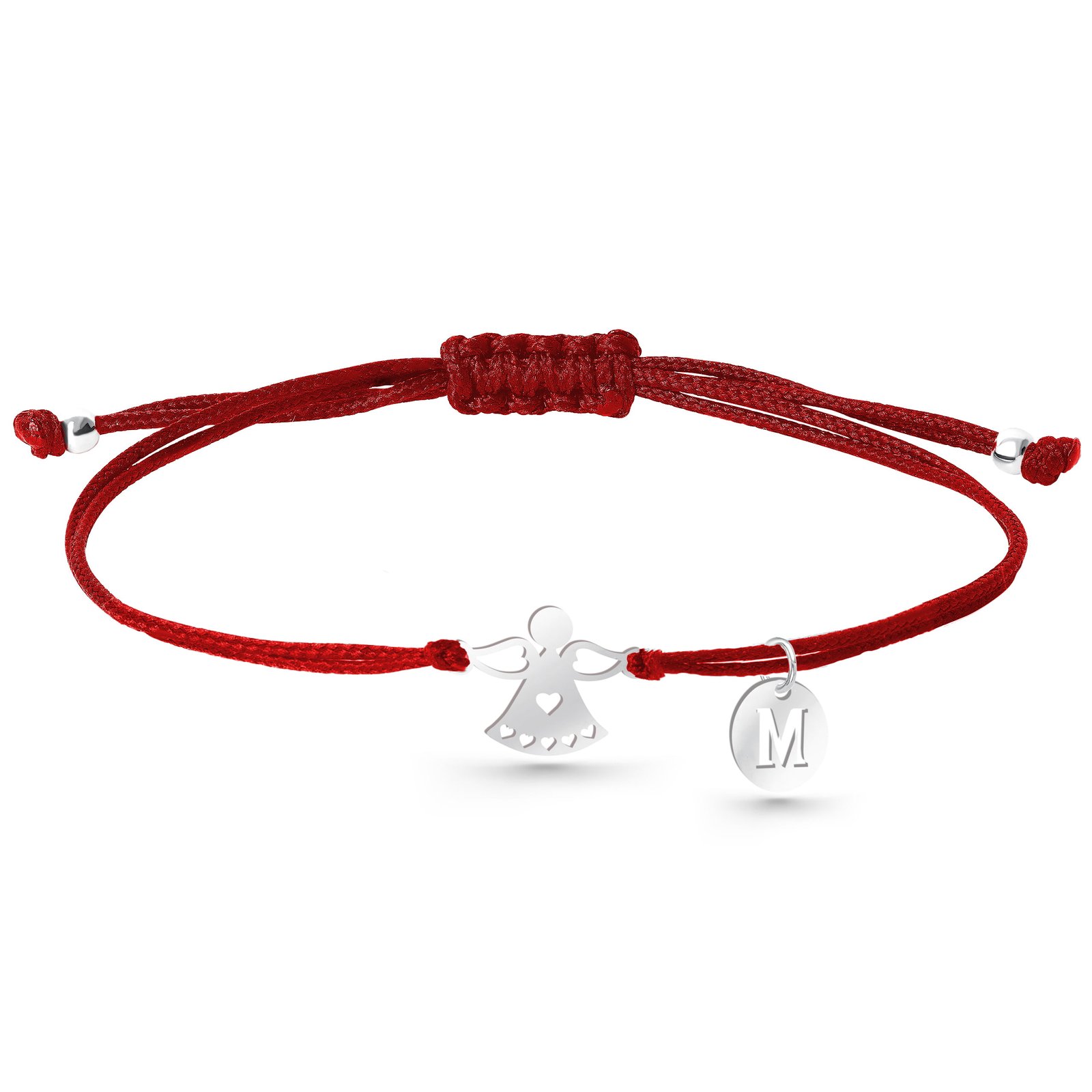 Bransoletka dla dziewczynki na sznurku na szczęście aniołek z Twoją literką Bransoletka dla dziewczynki na sznurku na szczęście aniołek z Twoją literką