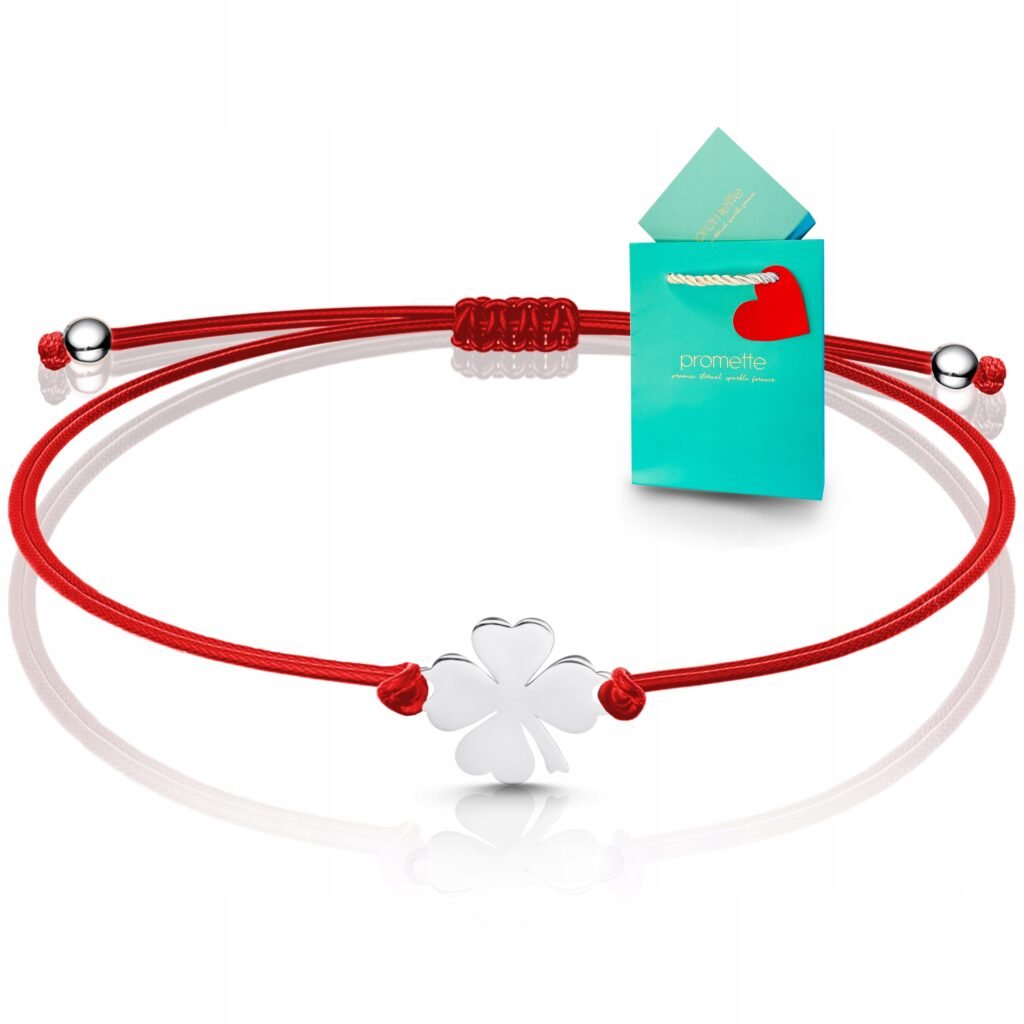 Bransoletka na sznurku koniczyna koniczynka srebrna czerwona na szczęście