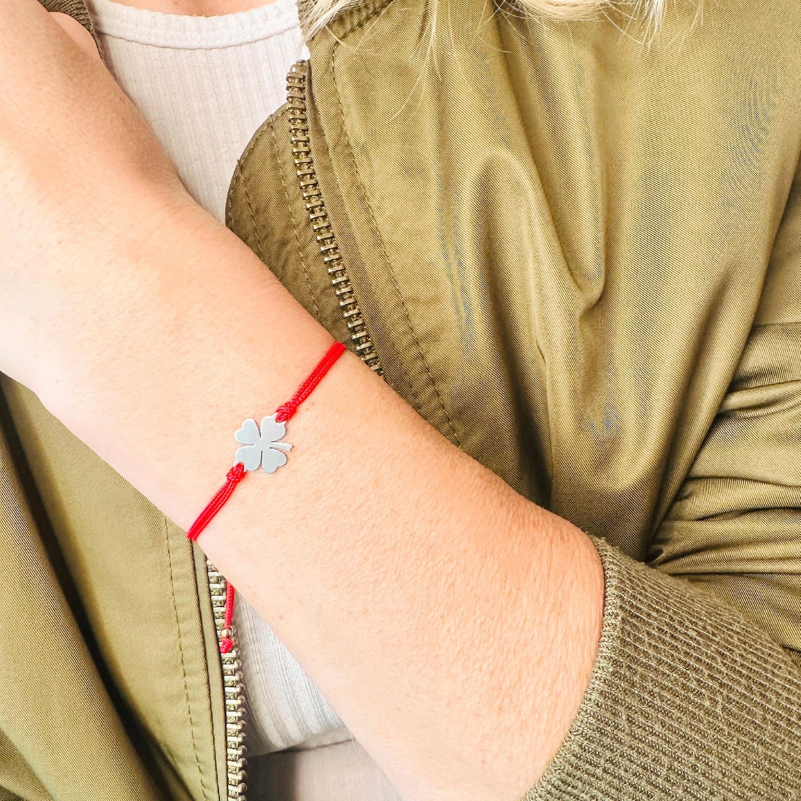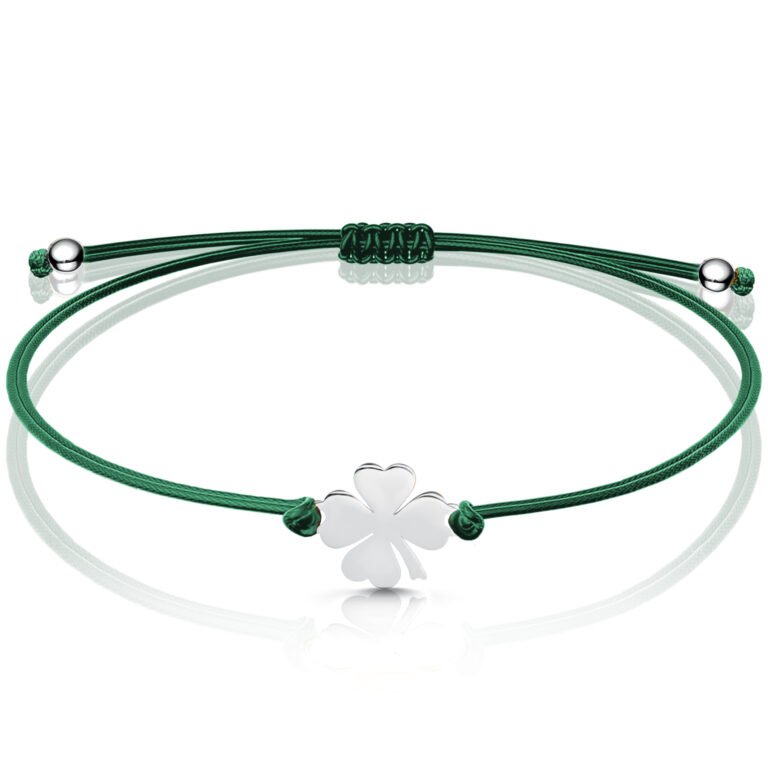 SREBRNA BRANSOLETKA NA SZNURKU Z MODNYM MOTYWEM