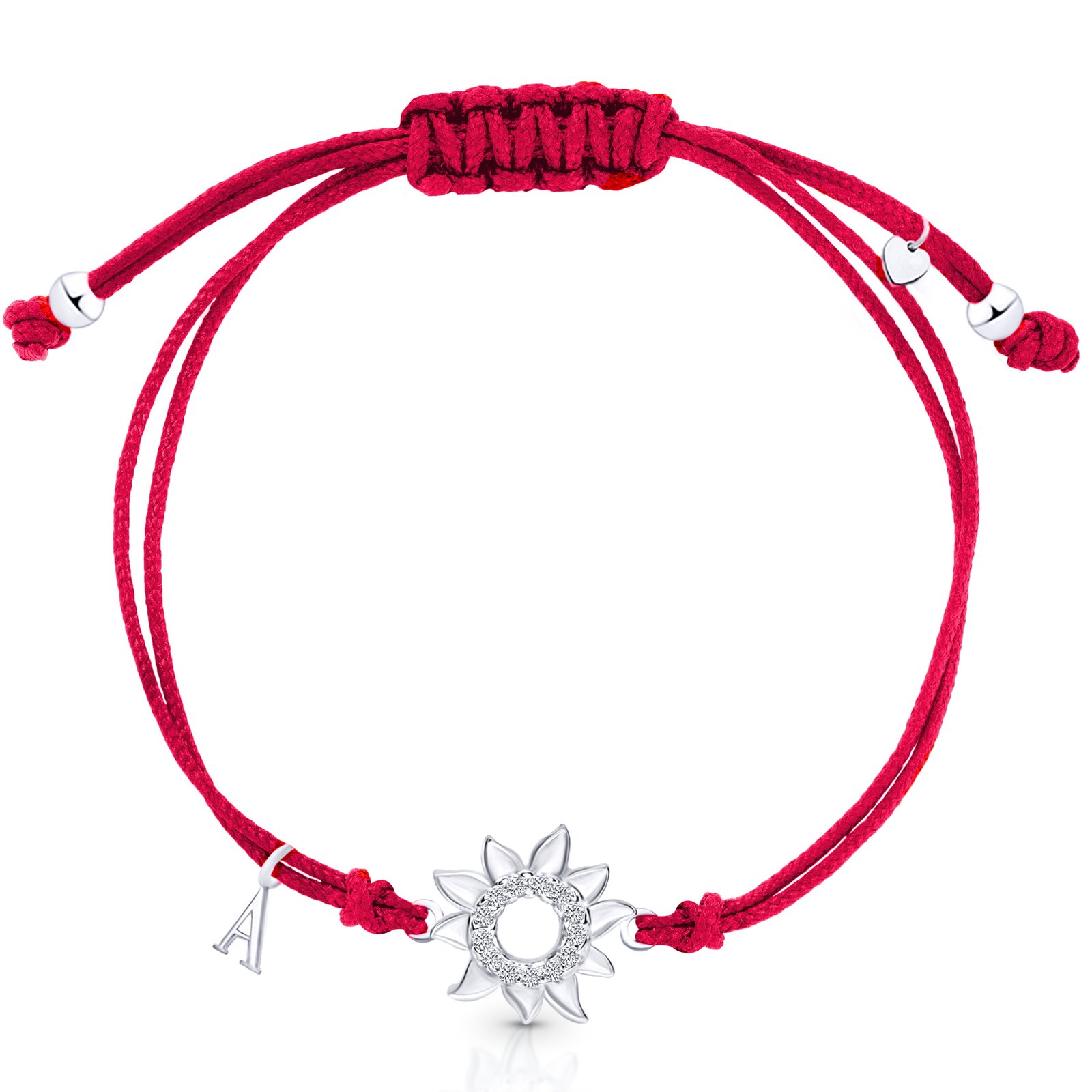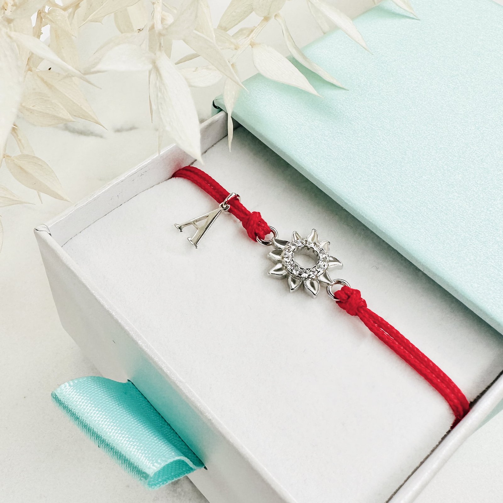 Bransoletka szczęścia srebrna na sznurku z Twoją literką Bransoletka szczęścia srebrna na sznurku z Twoją literką