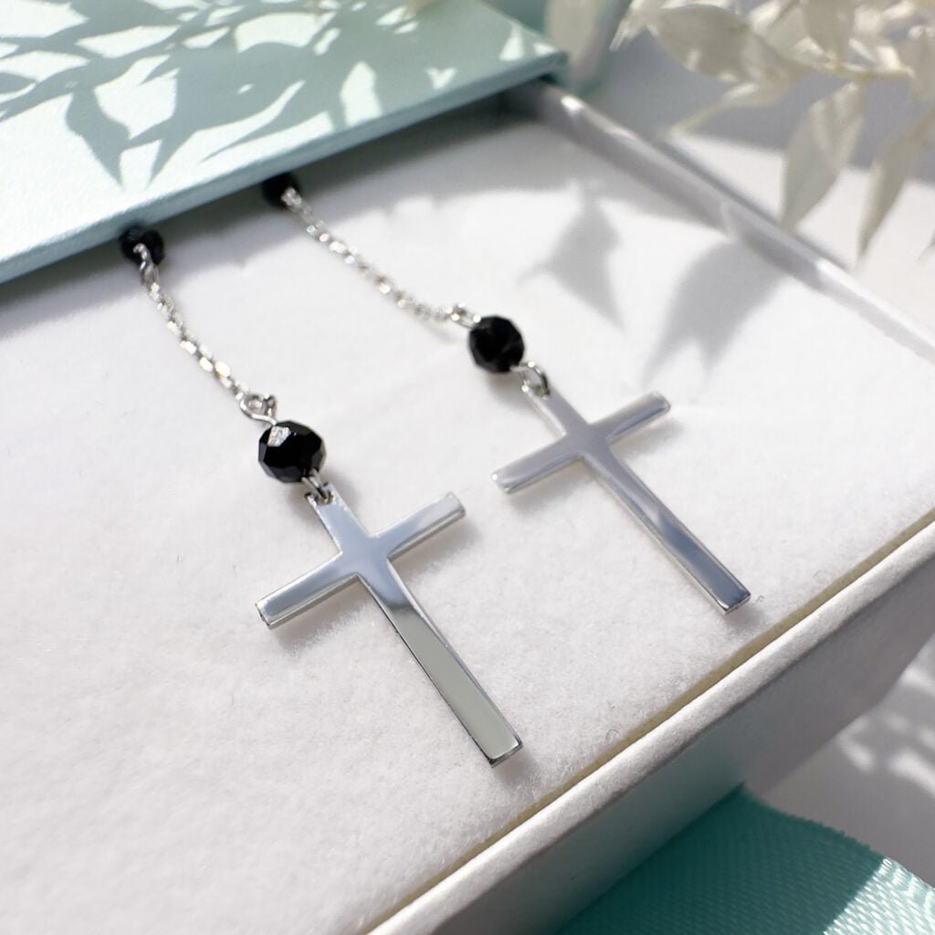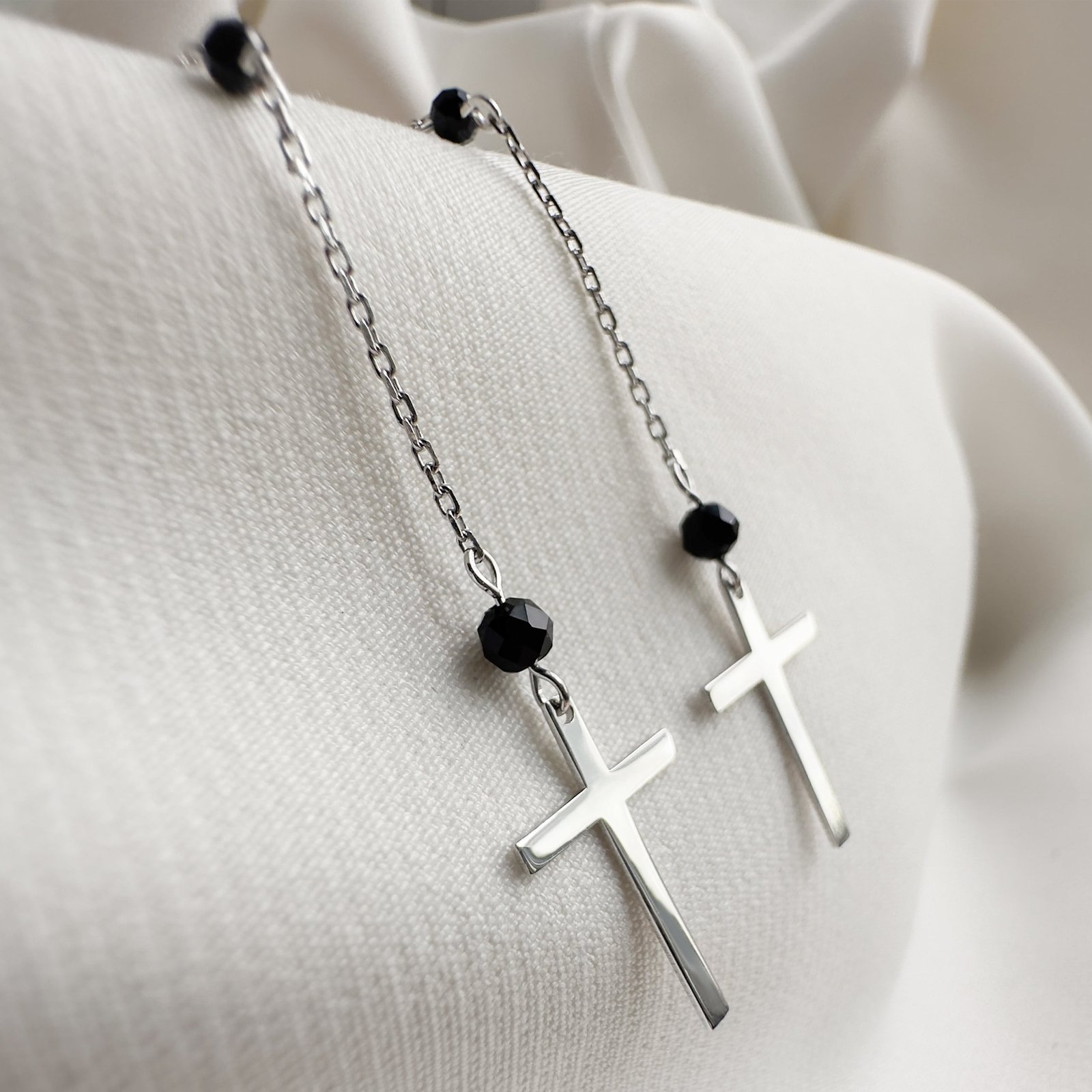 Kolczyki srebrne wiszące krzyże z naturalnymi turmalinami