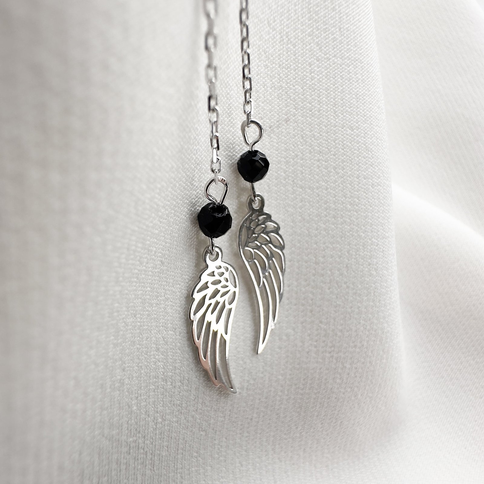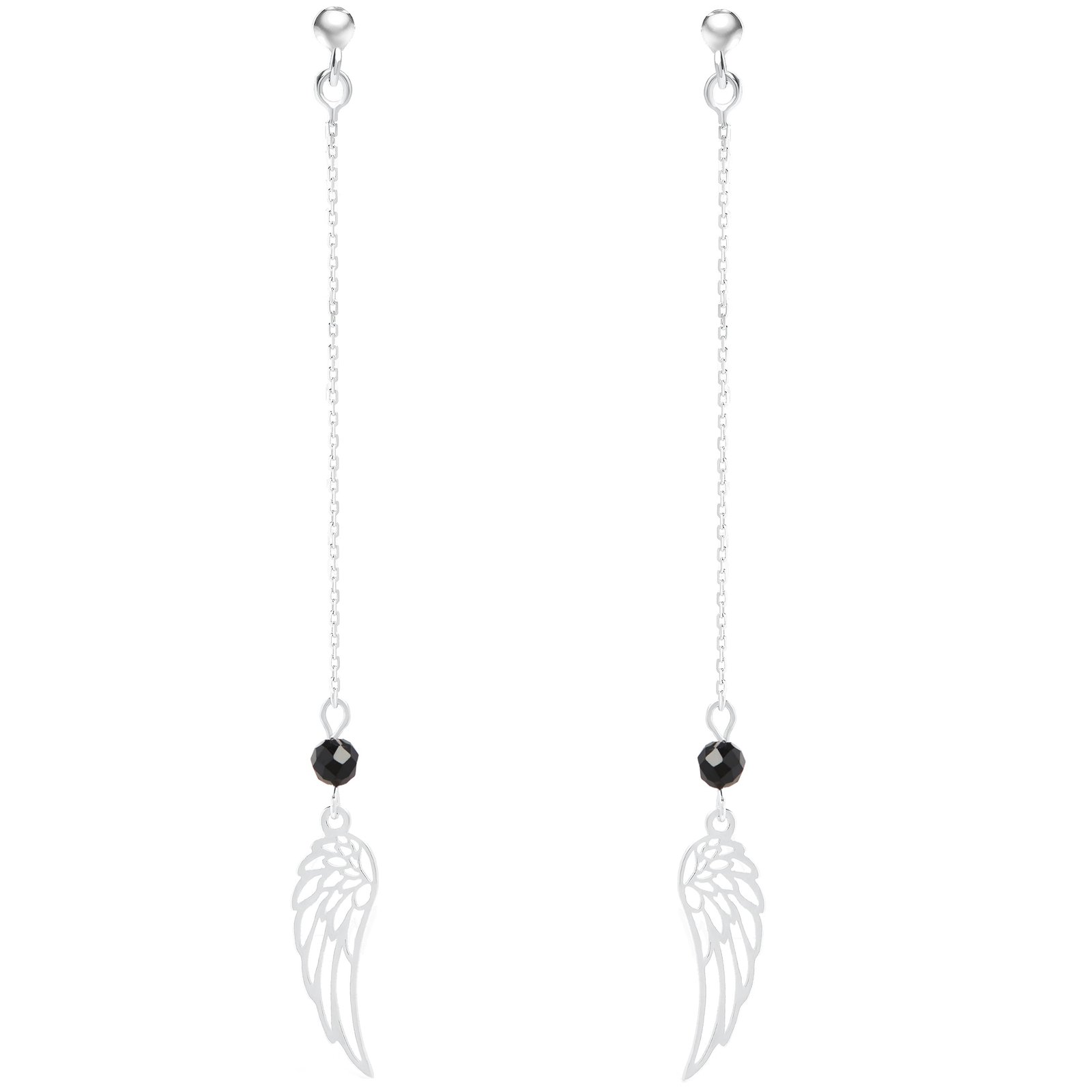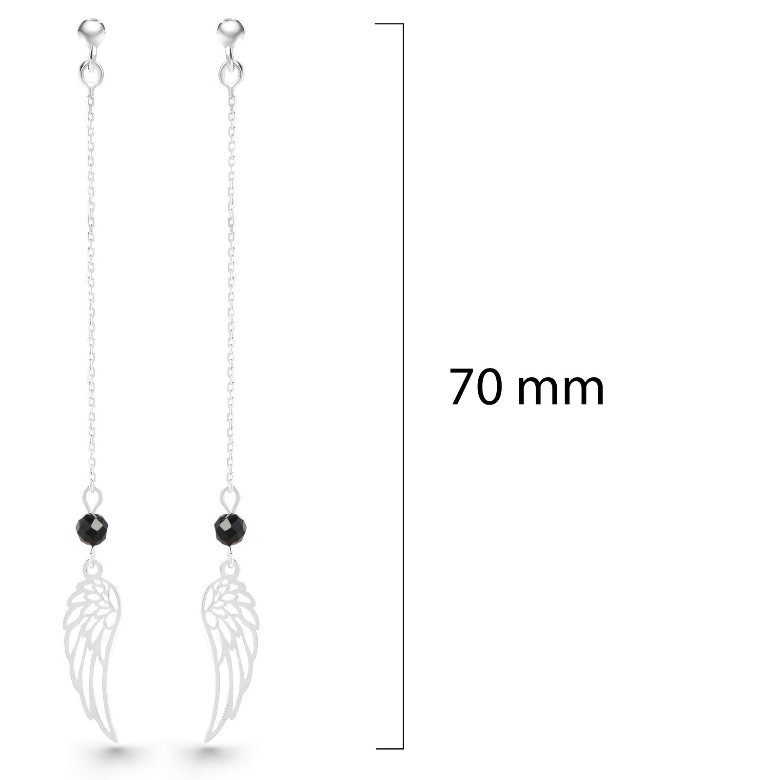 Kolczyki srebrne wiszące skrzydła z naturalnymi turmalinami
