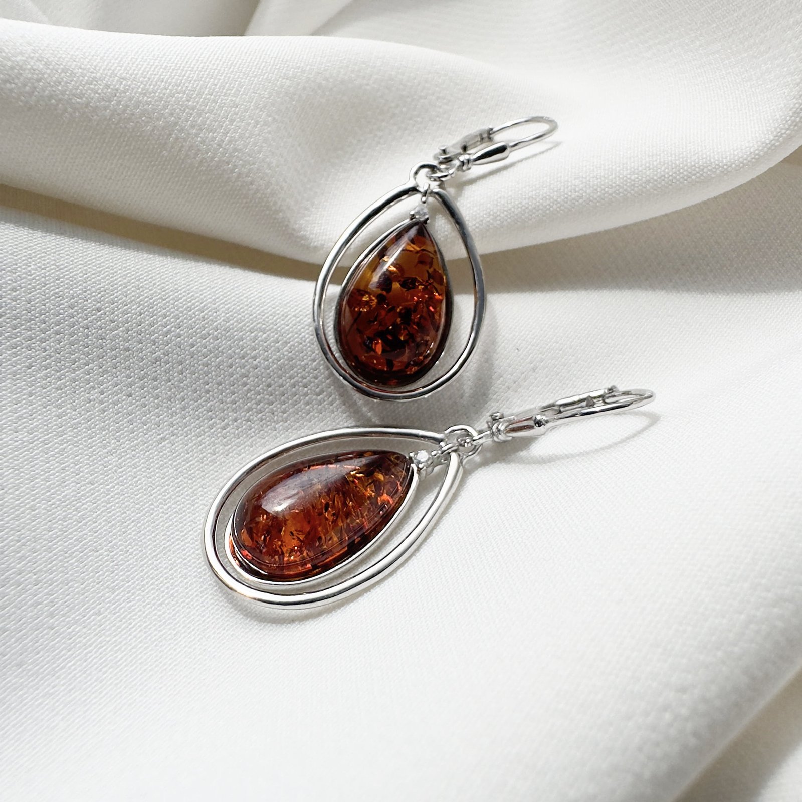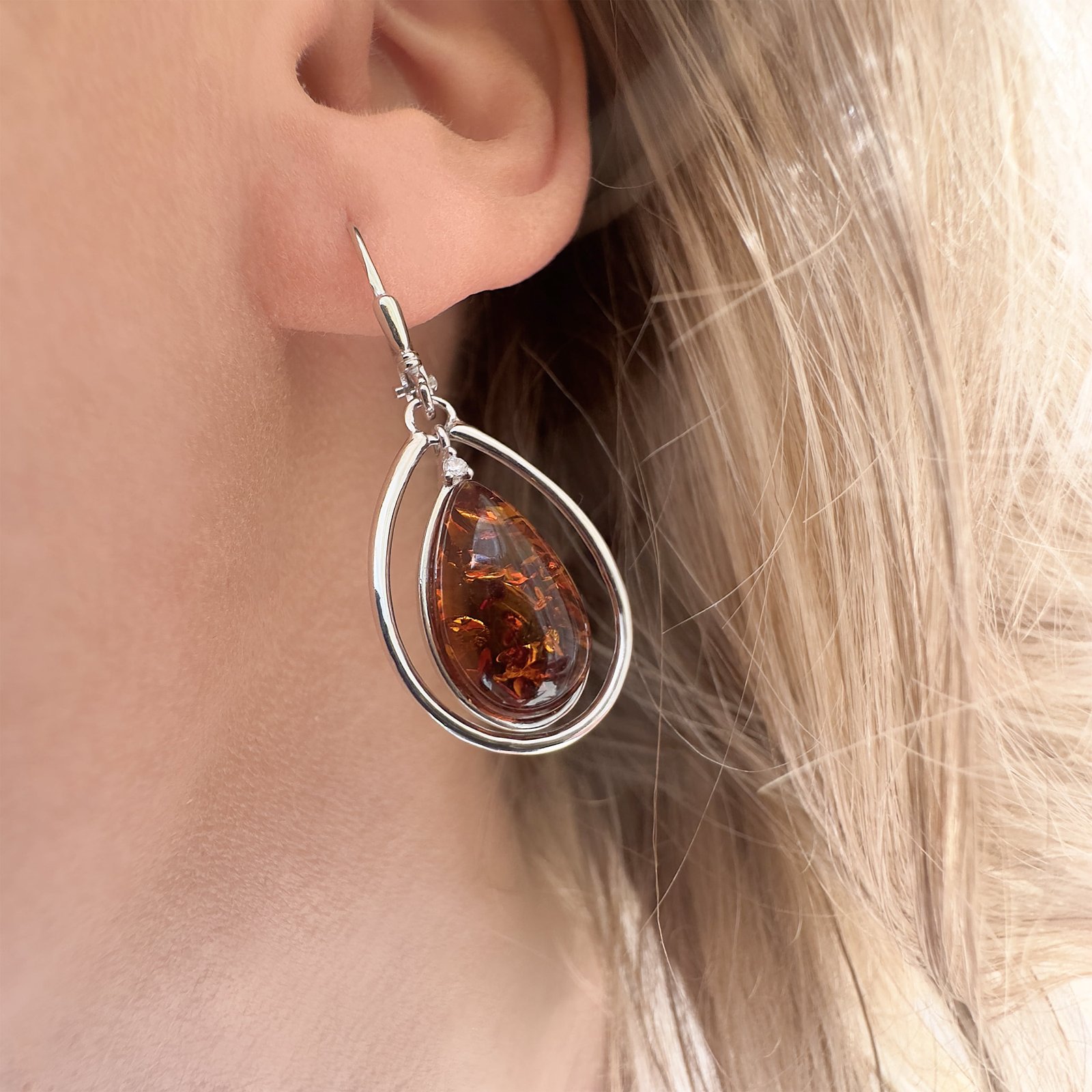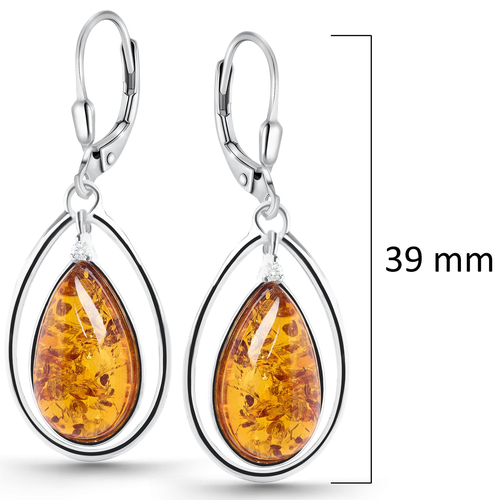 Kolczyki srebrne z bursztynem i cyrkonią Kolczyki srebrne z bursztynem i cyrkonią